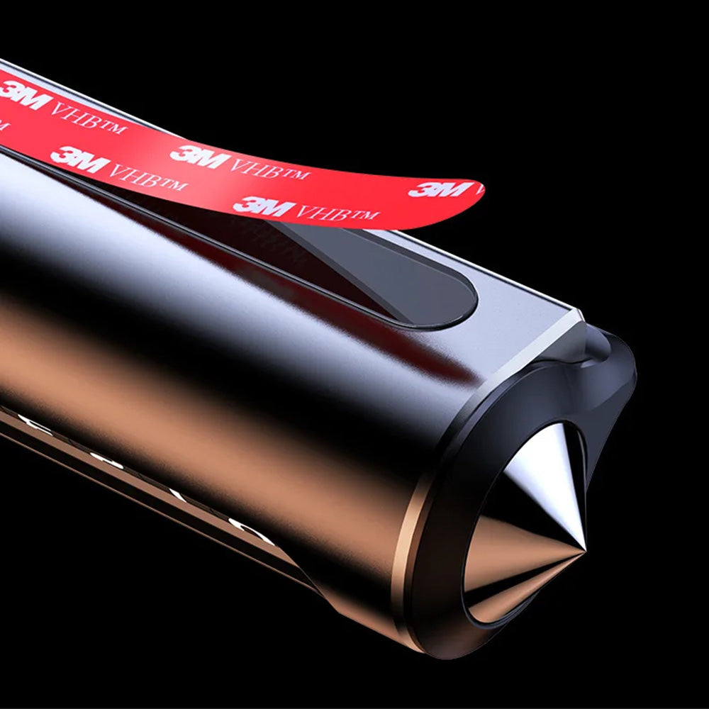 Het kegelvormige uiteinde kan in noodgevallen worden gebruikt om het zijraam van de auto te breken.