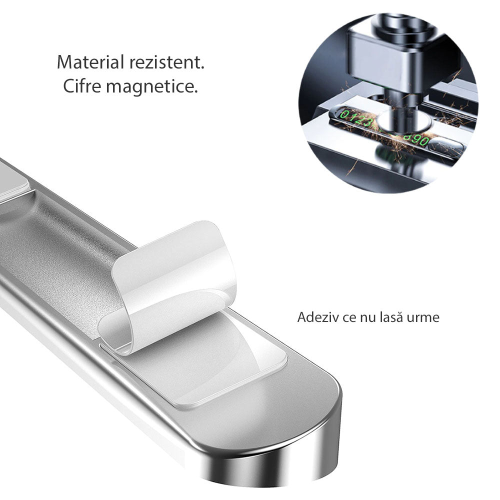 Ook zijn de cijfers magnetisch, waardoor ze gemakkelijk aan de houder bevestigd kunnen worden. De ruimte maakt het mogelijk om een nummer van 11 cijfers te vormen.