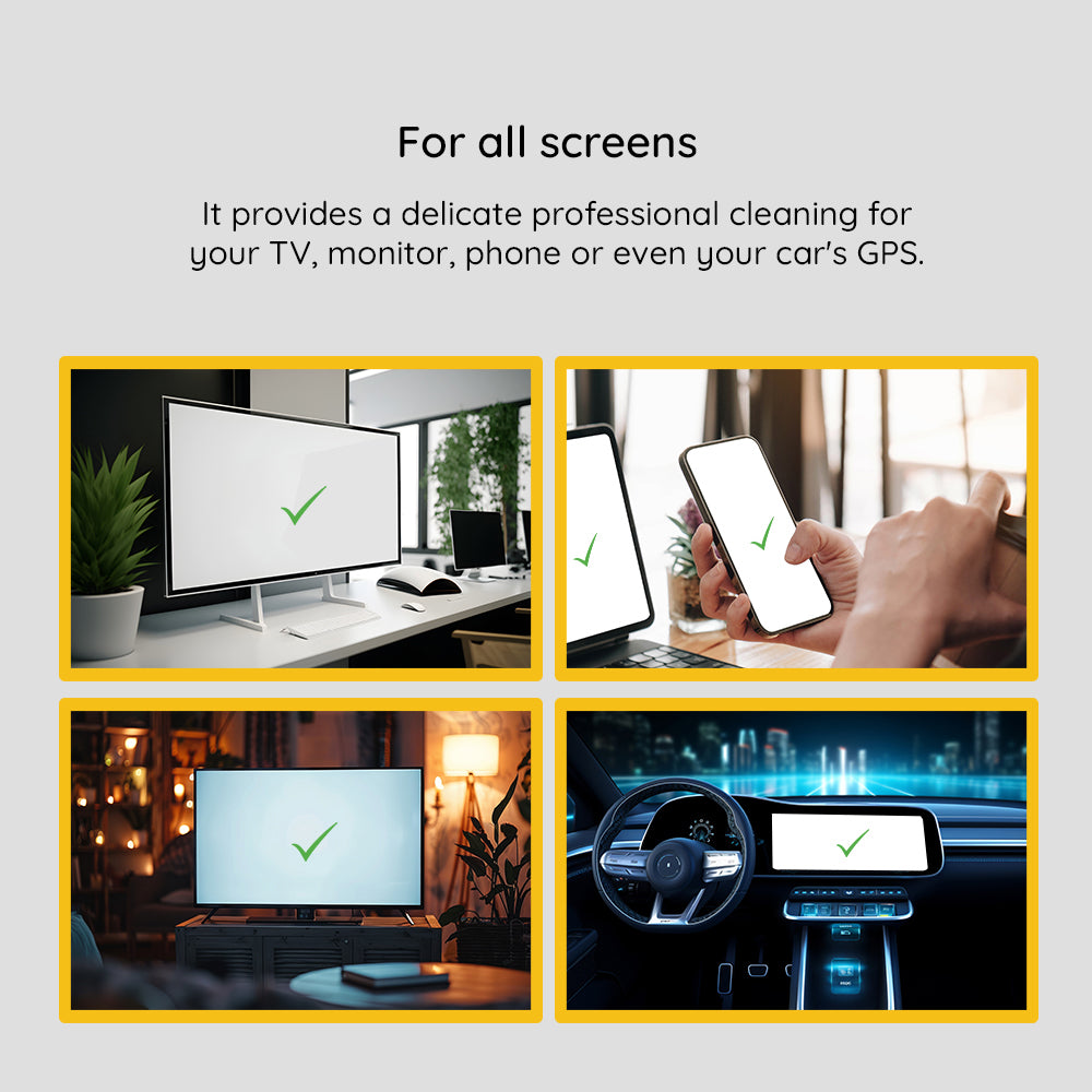 Kan worden gebruikt op elk type scherm: LED, OLED, LCD, Retina, touch zonder risico op beschadiging of mat worden.