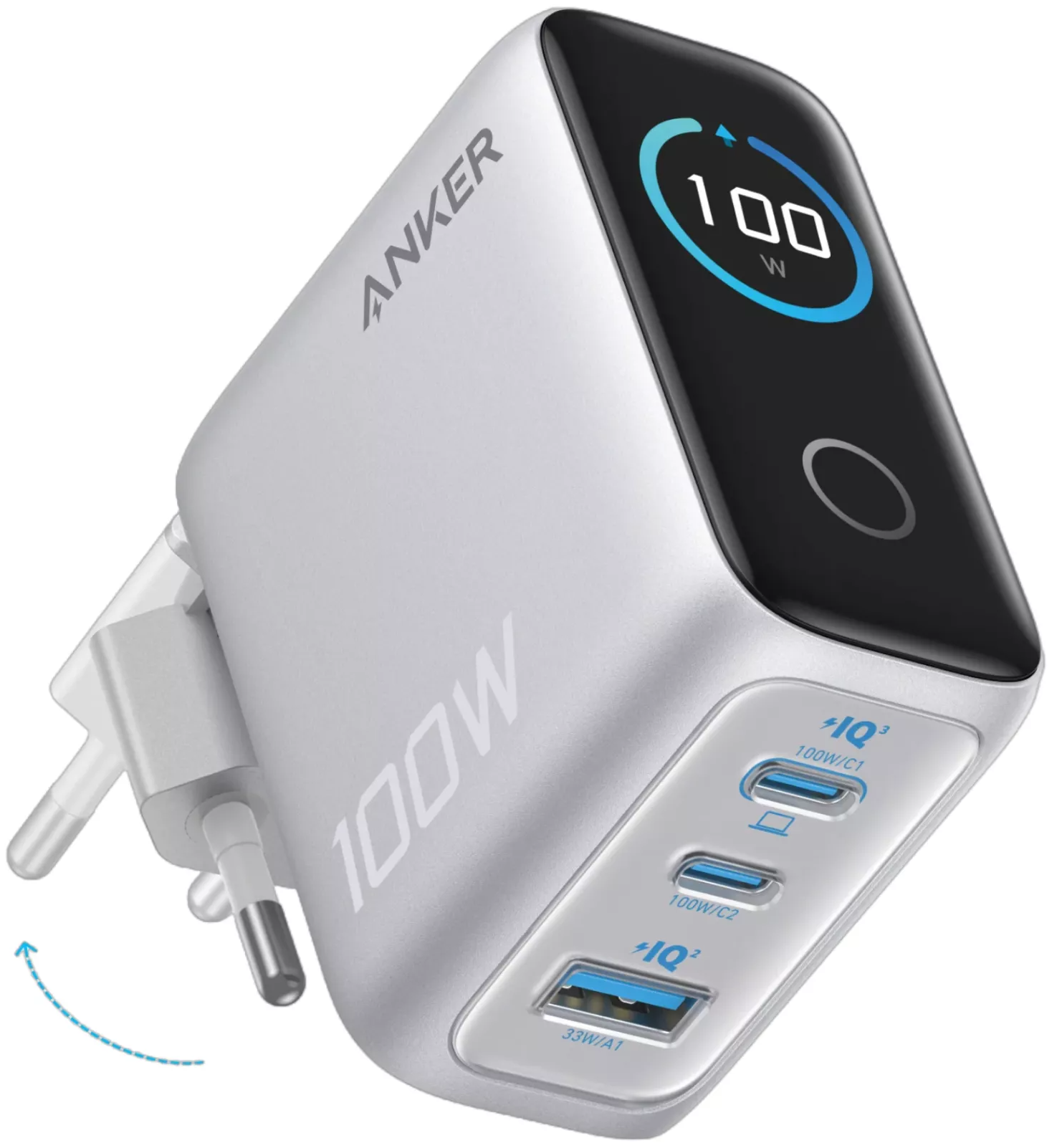 tot 100W, wat zorgt voor een ultra-snelle oplaadtijd voor veeleisende apparaten. Het compacte ontwerp, 33% kleiner dan conventionele opladers,