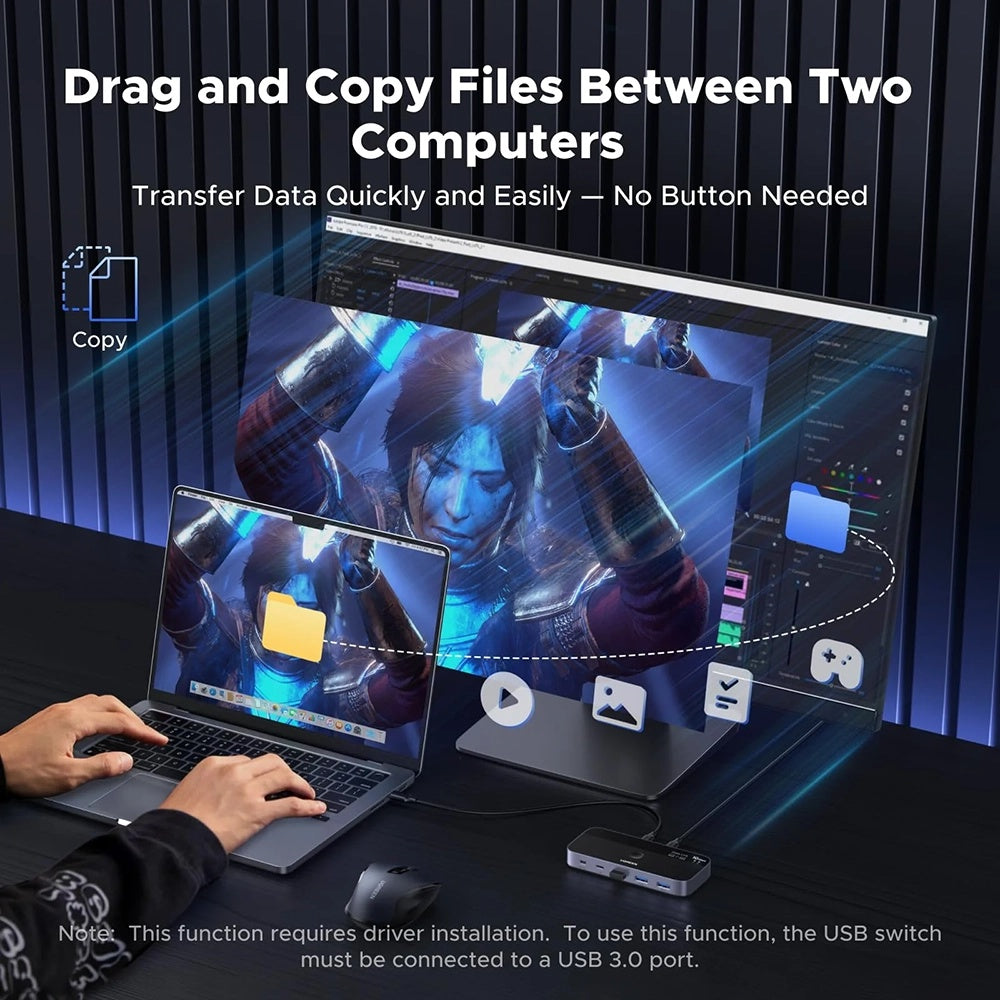 Zowel de USB3.2-poorten als de Type-C poort ondersteunen datatransfers tot 10Gbps. Deel documenten in recordtijd met behulp van deze switch adapter.